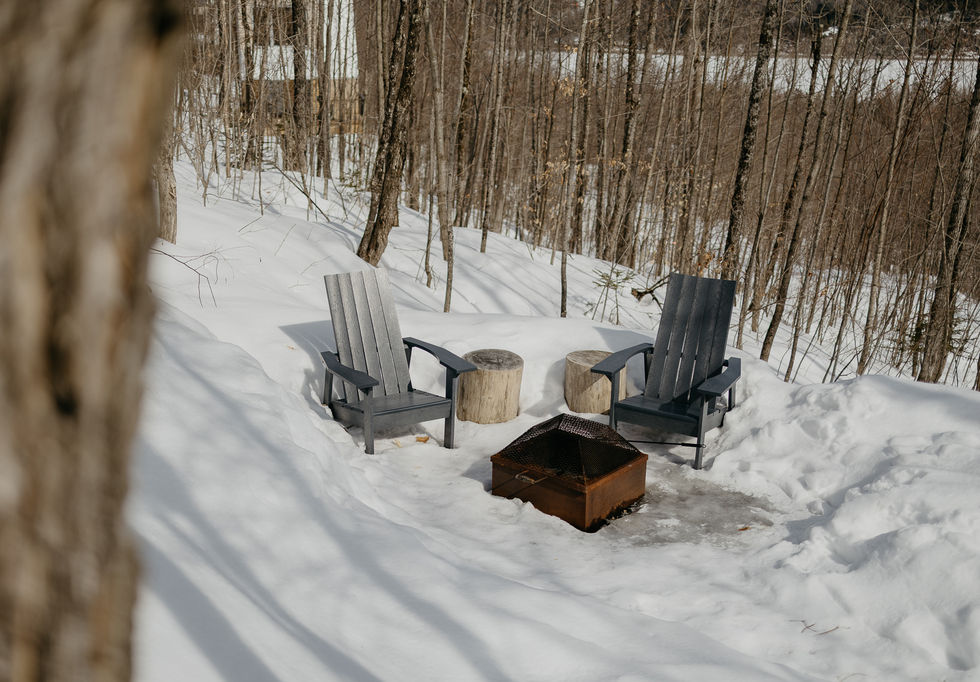 À l’extérieur, vous avez une magnifique petite terrasse semi-couverte et intime donnant la vue sur la forêt. De plus, un BBQ au propane est à votre disposition (4 saisons) ainsi qu’une table bistro (3 saisons). Hiver comme été, vous pourrez profiter de l’espace foyer à l’extérieur pour savourer l’instant présent et vous reconnecter avec vous-même et la nature.