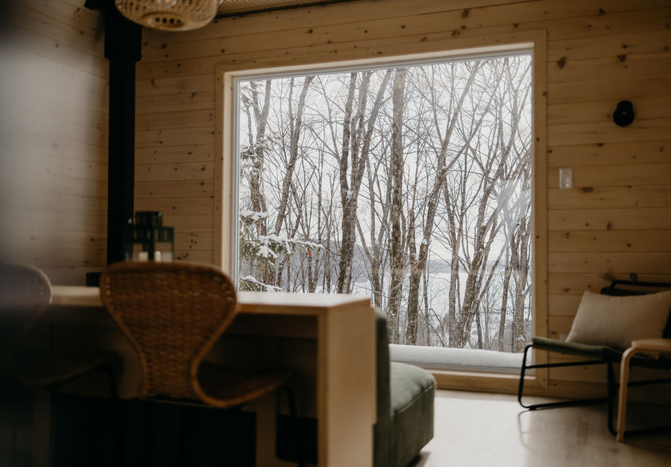 Pour un séjour combinant l’aventure et une déconnexion complète, optez pour l’un de ces refuges perchés à flanc de montagne et offrant une vue panoramique sur la rivière Saint-Maurice. Possédant une magnifique et grande fenestration, vous pourrez admirer les chaînes de montagnes de la Mauricie dans le filet suspendu de l’aire de repos.