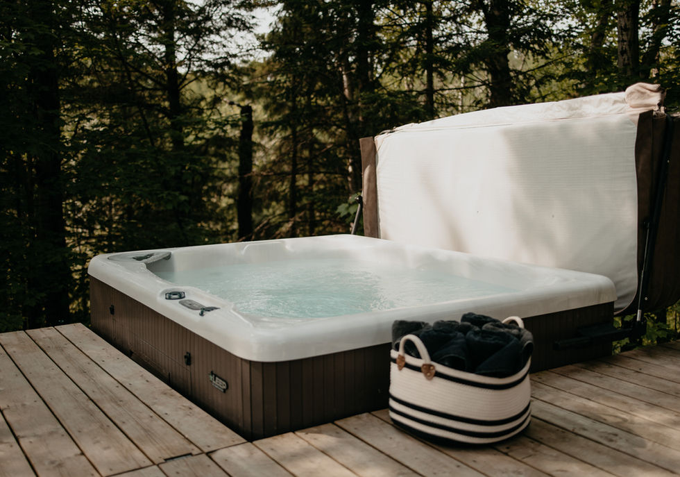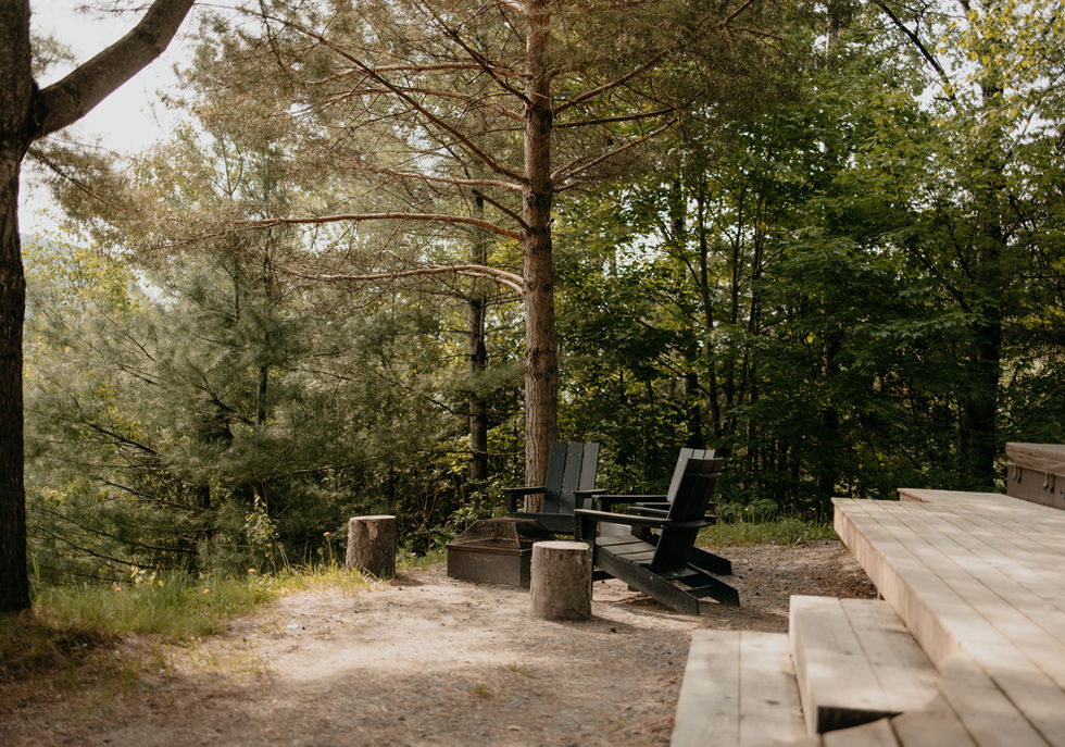 À l’extérieur, vous pourrez profiter de votre spa privé avec une vue exceptionnelle sur les environs et d'une magnifique petite terrasse avec un BBQ au propane. Un espace foyer* est également disponible à l’extérieur pour savourer l’instant présent.