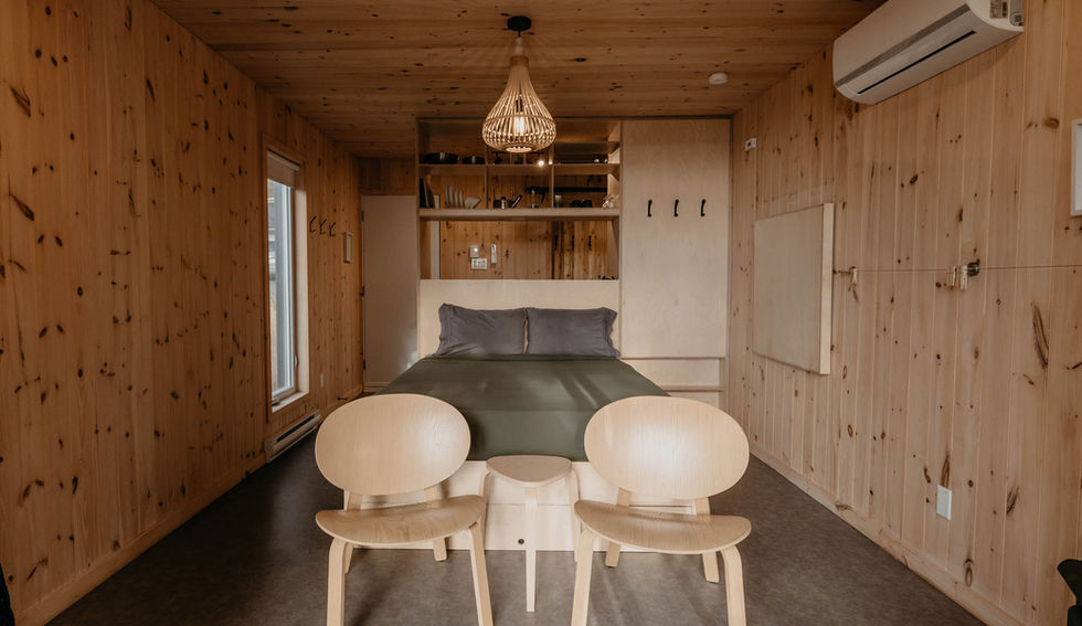 Notre micro-refuge est équipé d'une cuisine pour préparer des repas simples et déliceux et d'une salle de bain avec toilette et douche pour plus de commodité. Il comprend un lit queen et un lit double coulissant pour héberger jusqu'à 4 personnes. Le foyer au bois ajoute à l'ambiance rustique du refuge et est idéal pour se réchauffer en hiver ou pour créer une atmosphère chaleureuse en soirée. La chaise suspendue est également un excellent ajout pour se détendre et se reposer tout en admirant la vue sur la nature.