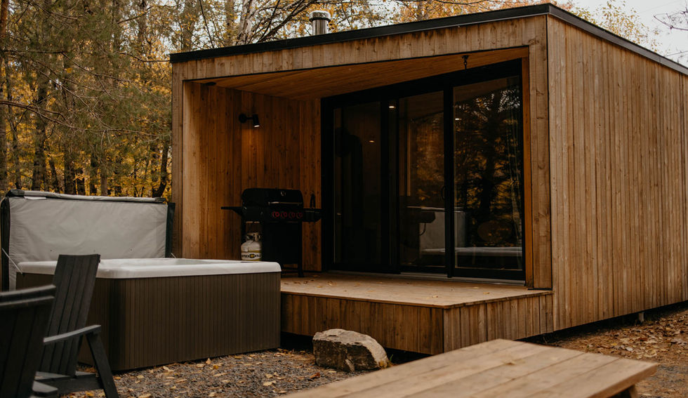 Ce micro-refuge en nature offre une vue imprenable sur la forêt environnante et peut accueillir jusqu'à 4 personnes grâce à un lit Queen et un lit double coulissant à l'intérieur. Le design minimaliste de ce refuge optimise l'espace disponible pour offrir un espace de vie confortable tout en restant connecté à la nature. Détendez-vous dans le spa, ce micro-refuge est un endroit parfait pour une escapade mémorable en famille ou entre amis.
